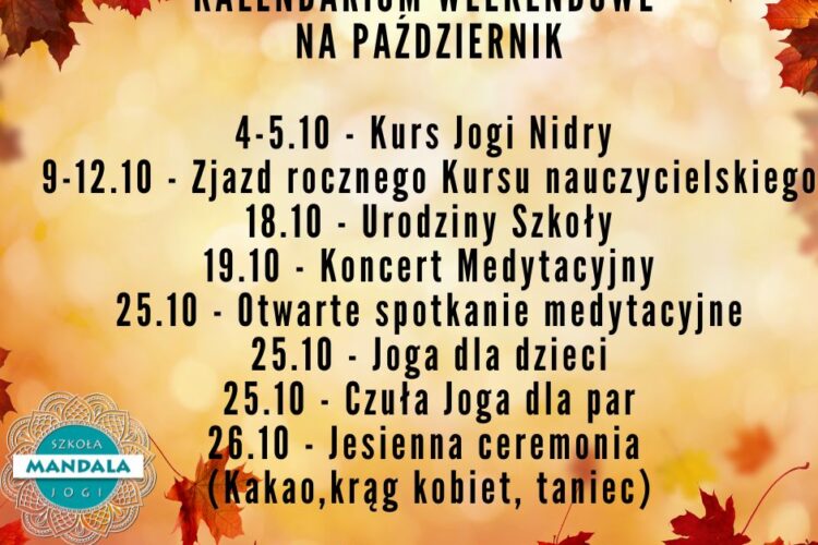 Joga dla rozpoczynających Prowadzenie – Lucyna i Robert Kurs stacjonarny – od 28 października- co wtorek o 17.00.Myślisz jak tu zacząć ? Czy to jest to ? czy to dla Ciebie ?No, to właśnie ten kurs, spotkania są dla Ciebie .Od podstaw, od początku , w stałej grupie, z doświadczonymi nauczycielami6 spotkań, w każdy wtorek od […]